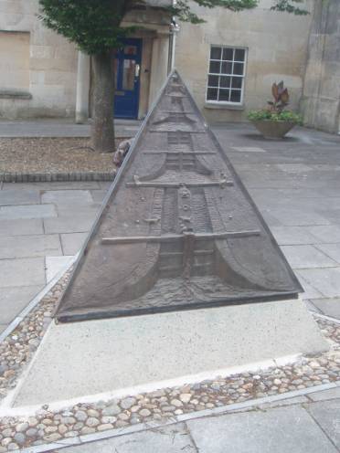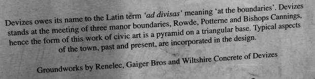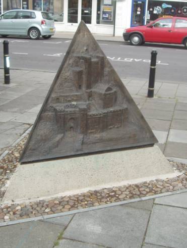 This little corner has a recent addition – the Devizes Pyramid. Once side concentrates on an association with sheep and another shows a castle – not like the present Victorian mock castle. The third side shows a narrow boat in a flight of locks. Rather nice, I think.