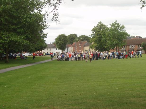 Across the road, on the Little Green an outdoor church service was getting under way.